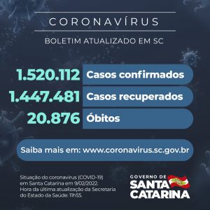 Boletim Novo Coronavírus – Covid-19 – 1.520.112 casos (09 de fevereiro 2022) Postado em 9 de fevereiro de 202212 de fevereiro de 2022 por Karla Lobato Clique aqui para fazer o download do boletim completo Postado em Boletins.