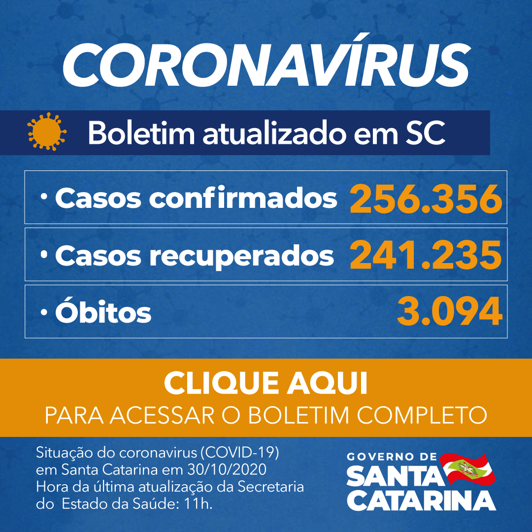 Boletim Novo Coronavírus – Covid 19 – 256.356 casos (30 outubro 2020) Postado em 30 de outubro de 202030 de outubro de 2020 por cotec Clique aqui para fazer o download do boletim completo